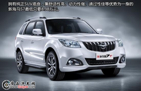 集眾多優(yōu)勢為一身的新海馬S7最低只要8.98萬元,結(jié)合目前誘人的購置稅減半政策以及超值的優(yōu)惠貸款政策,此時(shí)正是購買新海馬S7的**時(shí)機(jī)。如果您對(duì)SUV車型情有獨(dú)鐘,并且想要一部極具性價(jià)比的優(yōu)秀SUV,那么新海馬S7或許是您**的選擇!