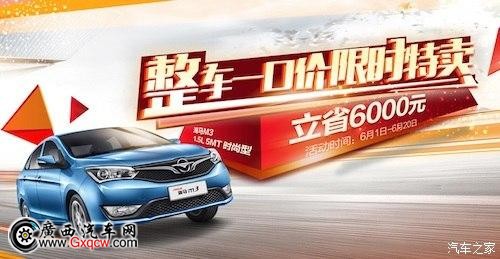 5. 整車一口價特賣:6.1-6.17下單,6.18-6.20付尾款;2016款海馬M31.5L手動時尚型,立省6000元,搶購價僅需4.98萬。