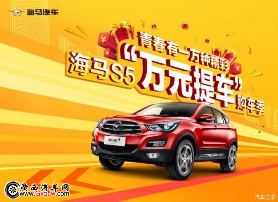 現(xiàn)在機(jī)會(huì)來(lái)了!鉅惠來(lái)襲!為回饋廣大消費(fèi)者,海馬汽車(chē)“萬(wàn)元提車(chē)”鉅惠政策已覆蓋海馬S5全系!只需首付“1萬(wàn)元”, 海馬S5安心開(kāi)回家!