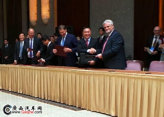 華泰汽車董事長張秀根與德爾維斯公司副總裁羅馬諾夫A.A簽約握手