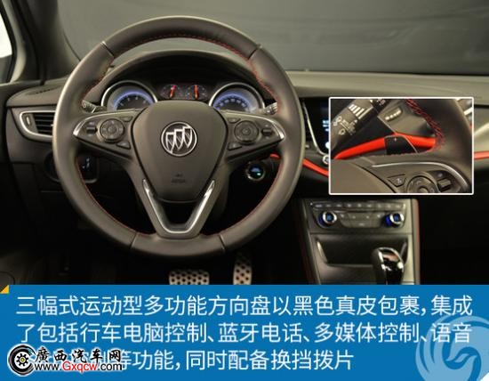 內(nèi)飾方面,別克威朗GS采用了全黑運(yùn)動內(nèi)飾,車頂內(nèi)襯、中控臺、座椅、門板均以黑色包覆;而貫穿中控面板的紅色飾條,精致的紅色縫線與Flame Red(烈焰紅)氛圍燈等紅色元素的運(yùn)用,都帶來了更多的運(yùn)動感。威朗GS還將配備帶換檔撥片的三輻多功能方向盤、Alcantara材質(zhì)運(yùn)動座椅,并在中控面板、車門把手等處鑲嵌碳纖維紋理飾條。
