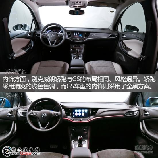 內(nèi)飾方面,別克威朗轎跑與GS的布局相同、風(fēng)格迥異,其中轎跑車型采用清爽的淺色色調(diào),貫穿中控的飾條與三廂版車型一樣為銀色啞光材質(zhì)。而GS車型的內(nèi)飾則采用了全黑方案,車頂內(nèi)襯、中控臺、座椅、門板均以黑色包覆;而貫穿中控面板的紅色飾條,精致的紅色縫線與Flame Red氛圍燈等紅色元素的運用,并在中控面板、車門把手等處鑲嵌碳纖維紋理飾條。