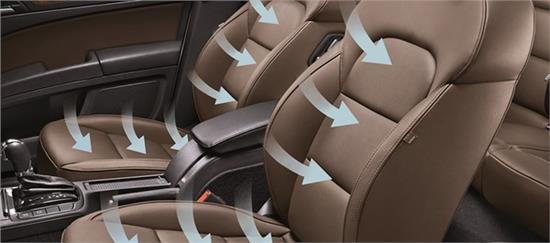 此外,New Superb速派的高配車型配置了前排獨(dú)立控制通風(fēng)座椅和前排獨(dú)立控制加熱座椅:前者在座椅坐墊及靠背處分別裝有一個(gè)兩擋調(diào)節(jié)的獨(dú)立小風(fēng)扇,通過(guò)座椅內(nèi)部的通風(fēng)管道起到排氣散熱的功能,在炎炎夏日帶來(lái)清涼舒爽的駕乘體驗(yàn);后者提供三檔調(diào)節(jié)功能,為寒冷冬日帶來(lái)絲絲暖意。