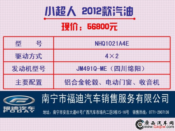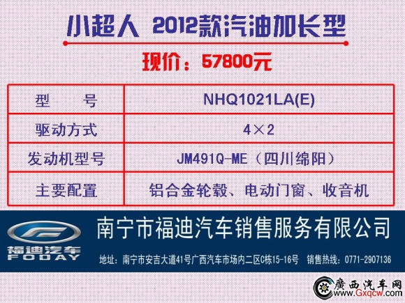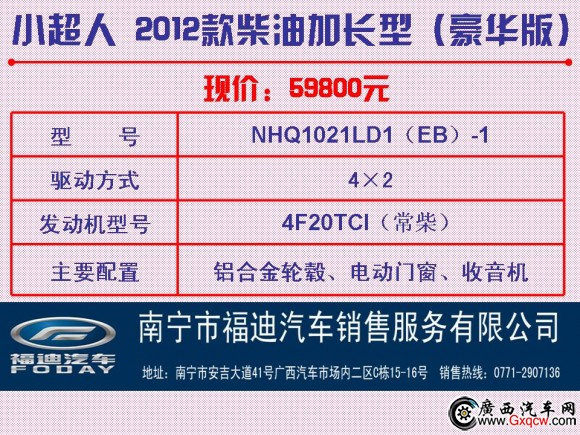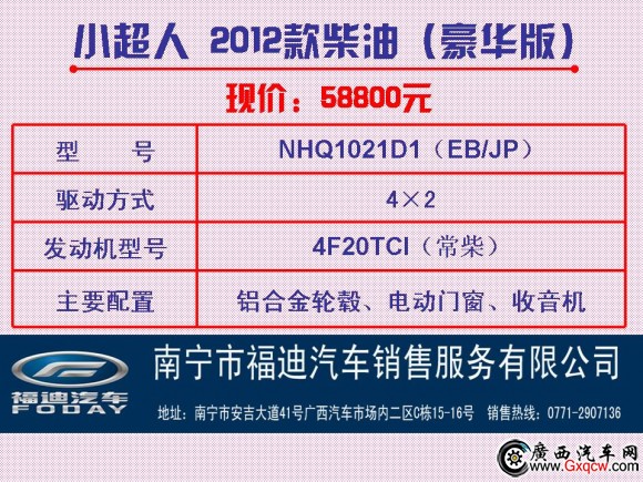 南寧市福迪汽車銷售服務(wù)有限公司公司地址:南寧市安吉大道41號廣西汽車市場內(nèi)二區(qū)C棟15-16號銷售服務(wù)熱線:0771-2907136