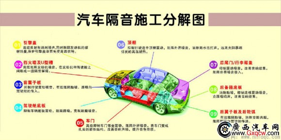 簡單來說無外乎幾個地方:底盤、四門、后備箱、尾箱蓋、引擎蓋、翼子板、車頂、儀表臺、防火墻、u型曹。想要了解隔音,先了解一下噪音來源: