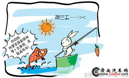 2、**天,小白兔去釣魚,一無所獲。第二天,它又去釣魚,還是如此。第三天它剛到,一條大魚從河里跳出來,大叫:你要是再敢用胡蘿卜當(dāng)魚餌,我就扁死你