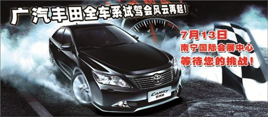 7月13日廣汽豐田廣緣高新區(qū)店將于南寧國際會展中心舉辦駕享樂購體驗營活動。