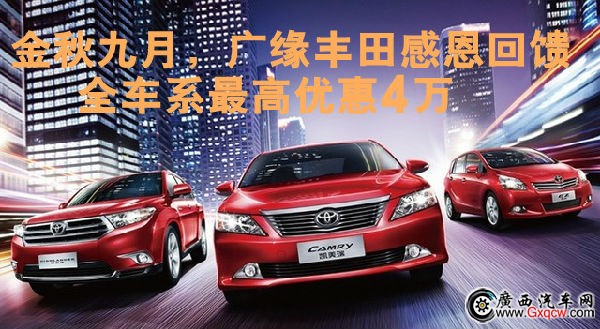 金秋九月,廣緣豐田感恩回饋,全車系*高優(yōu)惠4萬!
