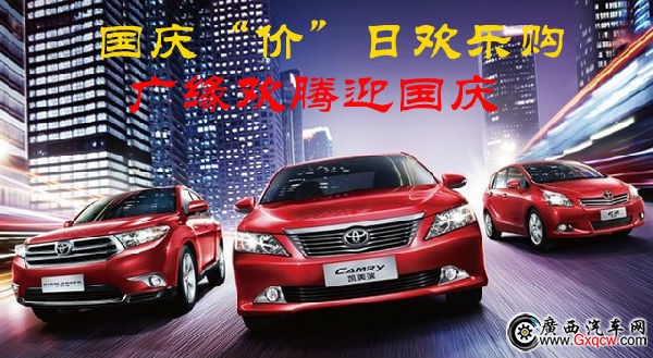 金秋一路走紅,廣緣歡騰迎國慶,國慶六十四周年,為慶祝國慶節(jié)到來,廣汽豐田南寧廣緣高新區(qū)店特推出――國慶“價”日歡樂購活動,將在國慶長假期間推出六款特惠車型,到店禮、訂車禮、驚喜禮多不勝數(shù),優(yōu)惠的價格、豐厚的禮品,期待您到店賞車試駕。