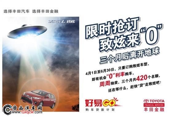 1、活動期間,每周從致炫訂單中抽取幸運(yùn)獲獎客戶,獲獎客戶可獲得豐田金融提供的“0利率”或“低利率”購買致炫的優(yōu)惠;