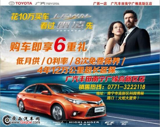 南寧廣緣高新區(qū)店攜手榮和大地,開展全系購車盛宴全場攜史上最帥中級車-雷凌,全新跨級時尚大兩廂-致炫,**中高級車銷量王-凱美瑞,高大上SUV-漢蘭達和時尚多功能家庭FUV-逸致等5款史上最強車型強勢登場。