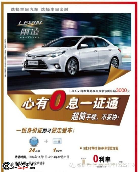 我店推出“首付50%,18個(gè)月免息”的金融方案,僅用一張身份證就可以貸款18個(gè)月免息購(gòu)得雷凌;