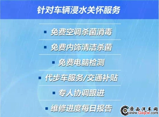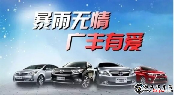 廣汽豐田廣西**店秉承“顧客**”的理念,開展“暴雨無情 廣豐有愛”——水浸車售后特別關(guān)懷活動(dòng)。 即日至2015年5月31日,為遭受暴雨襲擊而浸水的廣汽豐田車輛推出“六大關(guān)懷舉措”,具體如下: