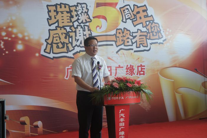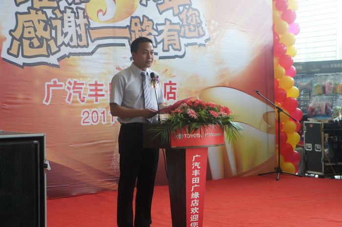 10:30,活動(dòng)準(zhǔn)時(shí)開始。會(huì)上,廣汽豐田廣緣店的總經(jīng)理李清國先生回顧了5年的發(fā)展歷程,對(duì)客戶支持、對(duì)員工付出的辛勤勞動(dòng)溢言于表!