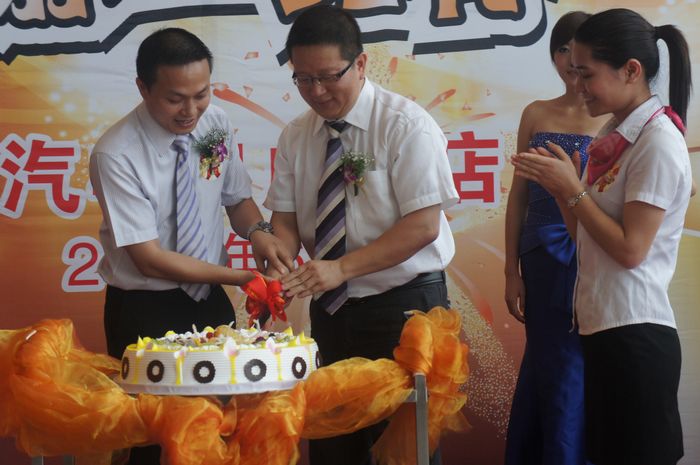 5周年的店慶,自然也少不了生日蛋糕,隨著歡快的薩克斯《祝生日快樂》歌響起,集團(tuán)總經(jīng)理王艷軍先生以及廣汽豐田廣緣店總經(jīng)理李清國先生5周周年的店慶,切開生日蛋糕,開啟廣緣廣豐店新的方向!將活動(dòng)掀起一輪高潮!