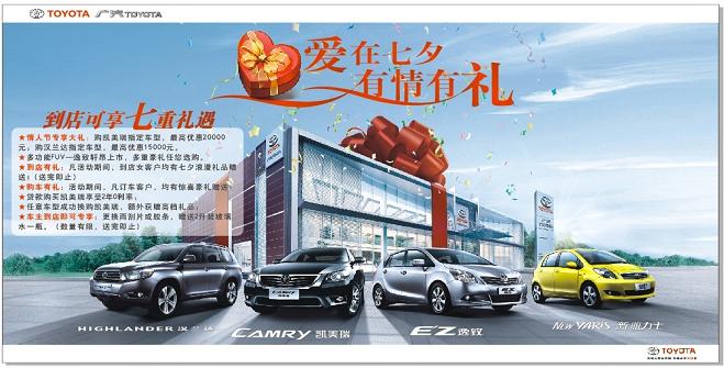 情人節(jié)專享大禮:購凱美瑞指定車型,*高優(yōu)惠20000元;購漢蘭達(dá)指定車型,*高優(yōu)惠15000元