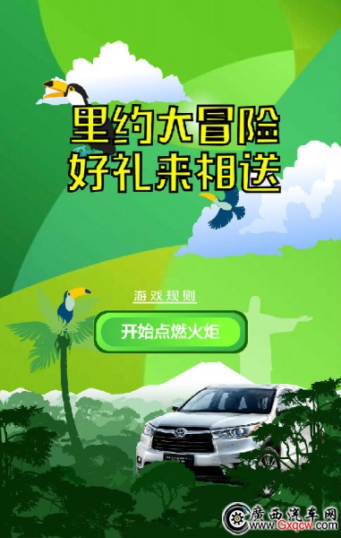 A.關(guān)注【廣汽豐田零件管家】公眾號(hào),點(diǎn)擊主頁菜單欄“來•互動(dòng)”→“粉絲福利”,直接進(jìn)入【里約大冒險(xiǎn)】H5活動(dòng)頁面。