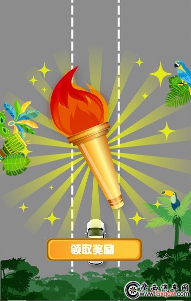 B. 點(diǎn)擊開始,進(jìn)行汽車蓄能小游戲,操作汽車左右移動(dòng),收集沿途火炬,儲(chǔ)蓄圣火能量。