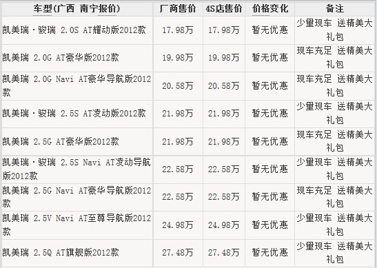 近日,編輯從南寧廣緣廣汽豐田4S店了解到,第七代凱美瑞現(xiàn)車供應(yīng),現(xiàn)購(gòu)買新凱美瑞送精美大禮包,關(guān)注新凱美瑞的朋友可聯(lián)系經(jīng)銷商獲得更多詳情。詳情見下表: