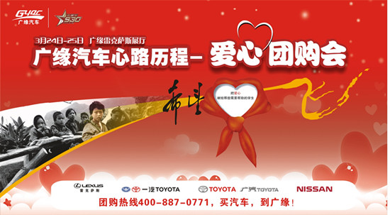廣緣汽車攜手930私家車電臺《關(guān)愛聯(lián)盟》邀您一起做公益,為百色市隆林縣豬場鄉(xiāng)爛木干小學(xué)的孩子送去學(xué)習(xí)的希望。3月24日-25日到高新區(qū)科園大道45號雷克薩斯展廳參加廣緣汽車愛心團(tuán)購會。購買雷克薩斯、一汽豐田、廣汽豐田、東風(fēng)日產(chǎn)車型即以您的名義向山里的孩子捐助一個學(xué)期的生活費(fèi)。更能直享團(tuán)購價!*高可獲贈10萬公里汽油,更大優(yōu)惠、更大的驚喜!