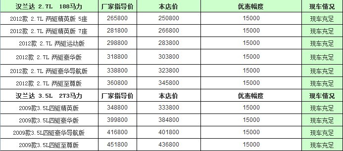 我們從廣汽豐田廣緣4S店獲悉,該店漢蘭達(dá)全系車型*高現(xiàn)金優(yōu)惠15000元,同時(shí)購買漢蘭達(dá)申請(qǐng)指定機(jī)構(gòu)貸款,可以享受**年“0”利息的優(yōu)惠活動(dòng)!感興趣的朋友可以關(guān)注一下。