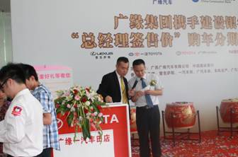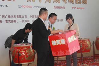2012年5月26廣緣汽車攜手建設(shè)銀行專場團購活動,在廣緣廣豐店趙總及廣西建設(shè)銀行區(qū)分行總經(jīng)理攜手揭幕