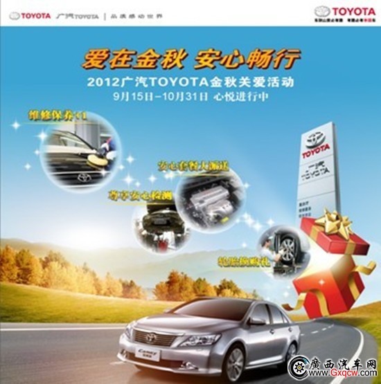 在此廣汽豐田為您推出了“愛在金秋 安心暢行”秋季服務(wù)優(yōu)惠活動: