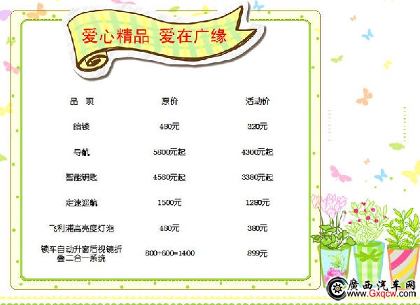 來(lái)廣緣花少錢(qián),享受高品質(zhì)的精品服務(wù),包裝您的愛(ài)車(chē),讓您的愛(ài)車(chē)設(shè)備更潮流,外觀更迷人,更駕駛更安全,使用更方便!