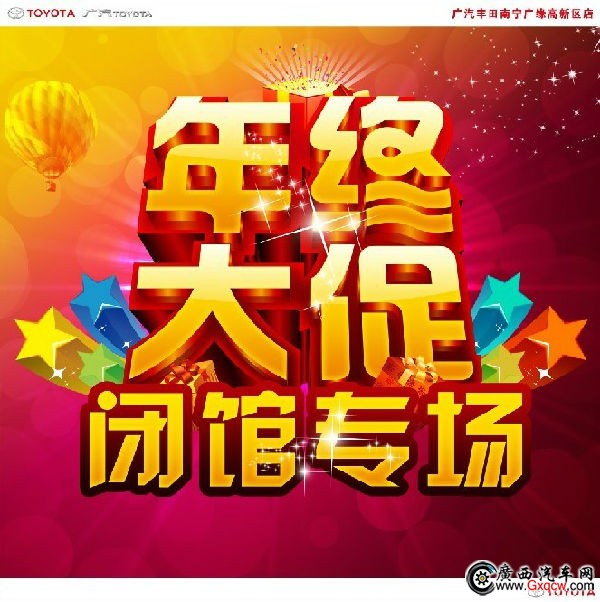 年末感恩大回饋,廣汽豐田南寧廣緣高新區(qū)店舉辦車展前感恩放量閉館促銷活動,屆時多款車型將以震撼的優(yōu)惠價格隆重登場,價格與車展同步,不用擠車展,輕松購愛車,機會不容錯過!