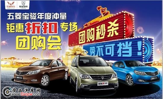 12月20日,2014年度*后一次收官團購盛宴震撼登場!優(yōu)惠一觸即發(fā),時間有限,價不等人,錯過一年,后“惠”無期!10臺現(xiàn)車一口價成交,特價車8折起,2000元油卡,萬元禮包,砸金蛋,一元拍,購車送財神,抽獎贏大禮,更有手掌涂鴉DIY 、圣誕party。到店禮、試駕禮、推薦禮、互動禮,到店就有!親們,為了你們的終極福利,俺們的年終獎豁出去了,我們是真“拼”了!12月20日,五菱寶駿年終收官團購盛宴,與您不見不散!搶購熱線:0771——3195050