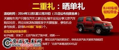 第二重“曬單禮”, 購車用戶在汽車之家論壇或易車網(wǎng)論壇分享天貓購車經(jīng)歷并反饋到天貓客服,即有機(jī)會贏取北京40車模一個。