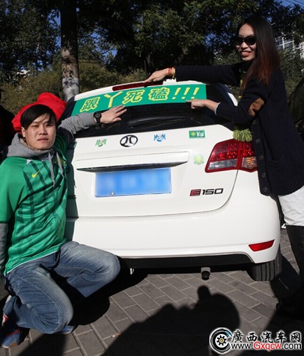 而我迫于學業(yè)與工作壓力,雖鮮有時間去客場遠征,但我在北京,無論是訓練還是主場比賽,我都成為了國安場外的第十二人,為自己心愛的球隊吶喊助威。在我通過搖號購車后,小E就兢兢業(yè)業(yè)地陪伴我走過了兩年“追星”的歲月。平時國安會在香河訓練基地集訓,作為球迷我自然會在閑暇之余驅(qū)車60多公里來到這個家具之都,與許許多多的國安球迷一樣守候在外場看訓練。此時,白色的小E,加上大氣簡約的外觀設計,迅速吸引了包括部分國安隊員、球迷的關注,而我在解答這是什么車,多少錢的時候,也順勢要到了一部分隊員的簽名。