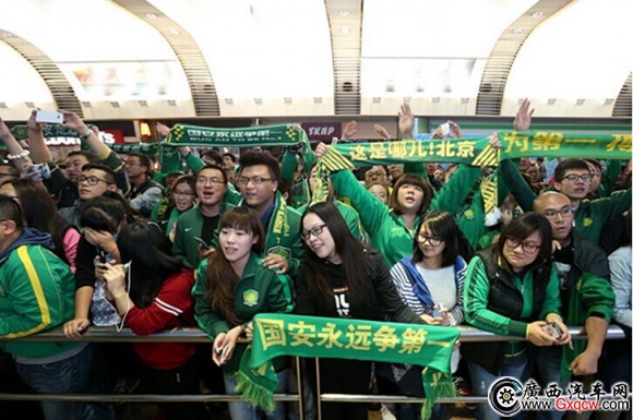 記得那天晚上,國安是晚上九點的飛機從白云機場起飛,我心情格外激動,因此駕駛小E帶著四個朋友,一起趕往首都機場迎接我們的城市英雄。讓我沒想到的是,當時現(xiàn)場竟來來了近千名“御林軍”球迷,將機場到達大廳圍得水泄不通,F(xiàn)場瞬間好似形成了一片綠色的海洋,此時,我們所有球迷都在高呼:“國安是冠軍”!