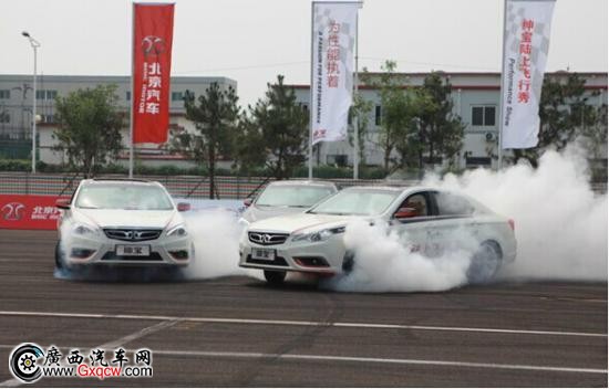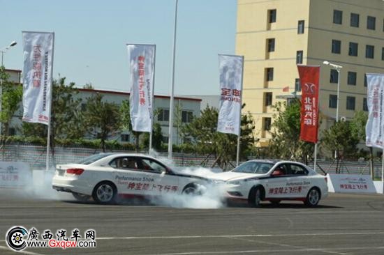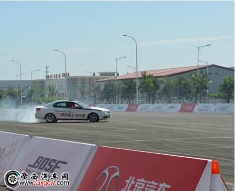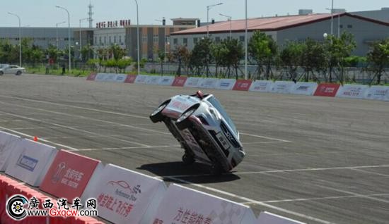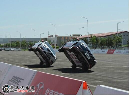 這是讓我最激動的一個動作!兩輪駕駛,要想讓兩輪行駛的車輛持續(xù)前進(jìn)就需要不斷的修正方向以保持車輛質(zhì)心兩側(cè)的質(zhì)量平衡。這既關(guān)乎到方向盤指向的靈敏及精確程度,也關(guān)乎到駕駛員對車輛重心轉(zhuǎn)移的敏感程度。別說紳寶車隊表演的駕駛員都做到了!我想知道如果我買這車的話,是不是也參做到這個動作!后來我查了下,那意思是,現(xiàn)場車手用的車都是量產(chǎn)的原裝紳寶車,只要你有車手的技術(shù),看樣子是可以做到這個的!但是………你懂的……安全**。