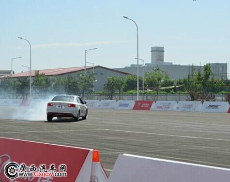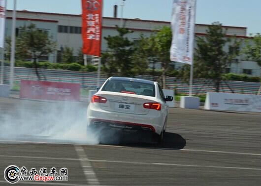 我最喜歡的還有?Kiss燒胎環(huán)節(jié)。由于紳寶D70采用的薩博9-5的平臺,整車重心非常靠前。要想讓這樣的頭重尾輕的前驅(qū)車突破前輪附著力表演燒胎還是挺不容易的。這個動作看起來相當(dāng)熱鬧,車胎在原地摩擦,冒出滾滾白煙!我只想說,這車是不是有點太皮實了!但也不能這么造吧!