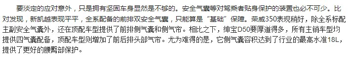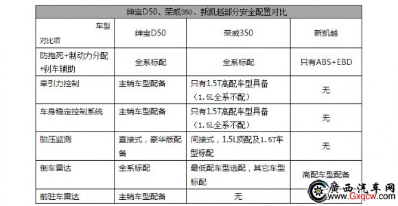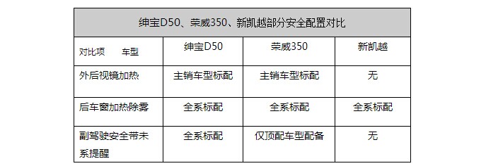 紳寶D50、榮威350、新凱越安全氣囊配置對(duì)比 | |||