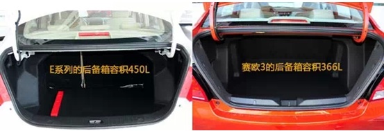 在儲物空間方面,小E可謂優(yōu)勢明顯,450L的超大后備箱容積與一些A級車的后備箱空間相當,比如新科魯茲后備箱的容積為430L,?怂沟暮髠湎淇臻g則僅為356L,遠不如A0級的小E。賽歐3的內(nèi)部容積也比較大,后備箱的容積為366L,能夠滿足車主的日常儲物需求。