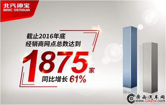 低門檻、高盈利的北汽紳寶,頓時(shí)成了投資人眼中的香餑餑!耙惶旖哟ㄍ顿Y人,來不及喝口水”成了北京汽車總經(jīng)理辦公室的真實(shí)寫照。忽如一夜春風(fēng)的互利渠道政策,令北汽紳寶終端數(shù)量猶如“千樹萬樹梨花開”,2016年1-12月新增加經(jīng)銷商網(wǎng)點(diǎn)680家,新增加網(wǎng)點(diǎn)數(shù)量同比增長(zhǎng)42%;截止2016年底,經(jīng)銷商網(wǎng)點(diǎn)總數(shù)達(dá)到1875家,同比增長(zhǎng)61%,增速十分驚人。