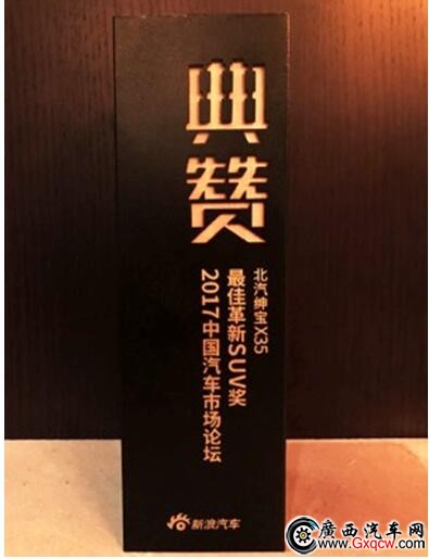 2017年1月19日,由新浪網(wǎng)舉辦的“2017中國(guó)汽車市場(chǎng)論壇暨新浪年度車頒獎(jiǎng)盛典”活動(dòng)隆重舉行。紳寶X35榮獲“**革新SUV獎(jiǎng)”!