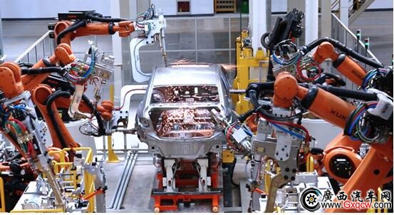 在車身焊接環(huán)節(jié),北汽紳寶智造基地又以大批量豪華車企標(biāo)配的設(shè)備令到訪媒體眼前一亮。進(jìn)入車間的瞬間,175臺德國KUKA機(jī)器人集體作業(yè)的畫面頗為震撼。同時值得一提的是,KUKA機(jī)器人還是眾多豪華品牌的御用設(shè)備,其中包括寶馬、保時捷等。更令人意外的是,車間搭載了在線激光測量設(shè)備ACS、機(jī)器人抓件視覺引導(dǎo)系統(tǒng),這能讓機(jī)器人“長了一雙眼睛”,能夠自適應(yīng)校準(zhǔn)。大批量前沿高端機(jī)器人的采用,不僅使生產(chǎn)效率大幅提升,更將焊接精準(zhǔn)度提升至其他中國品牌之上,為北汽紳寶新一代產(chǎn)品品質(zhì)再上保險。