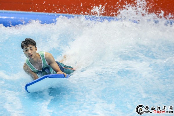 伴隨著一路驚喜,車隊(duì)很快抵達(dá)際華園極限體驗(yàn)中心。7月初正值盛夏,火爐重慶更是名不虛傳,但驚險(xiǎn)刺激的沖浪活動(dòng),將大家?guī)肓艘粋(gè)充滿清涼的新世界。高難度卷浪、平流沖浪、趴浪、滑板、淺水沖浪、單板滑水、花式滑水,難度不一,樂趣各異;高空飛翔活動(dòng)緊張刺激,讓嘉賓們?nèi)藗儽M情享受不一樣的生活樂趣,平日累積的疲憊一掃而光,恢復(fù)了久違的活力。而這正是2018款北京(BJ)20所倡導(dǎo)的生活方式,都市生活與縱享天涯只是咫尺,大家只需秉持初心,擁有一輛北京(BJ) 20即可享受“都市即天涯”的快感。