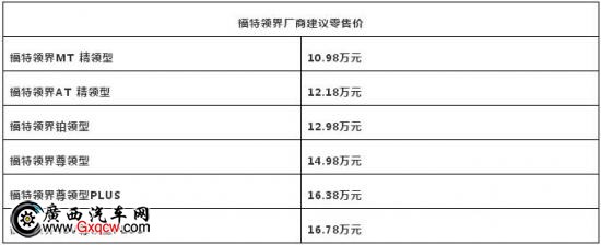 福特領(lǐng)界共提供6款車型,廠商建議零售價(jià)如下: