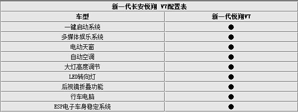 作為悅翔系列的高端產(chǎn)品,悅翔V7在配置上下足了功夫。一鍵啟動(dòng)系統(tǒng)、多媒體娛樂系統(tǒng)、自動(dòng)空調(diào)、電動(dòng)天窗、大燈高度調(diào)節(jié)等高科技配置一應(yīng)俱全,尤其是一鍵啟動(dòng)系統(tǒng)這在同屆別自主車型性并不多見,但就配置這項(xiàng)來說悅翔V7的表現(xiàn)值得稱贊。安全性配置方面,悅翔V7除了配備前排安全氣囊外,前排側(cè)氣囊和側(cè)氣囊也沒有被省略,當(dāng)然還有ESP電子車身穩(wěn)定系統(tǒng)。