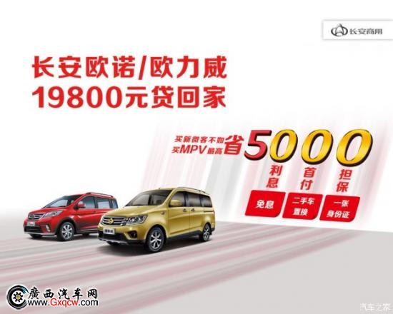 長安歐諾/歐力威19800元貸回家!一次性付齊,還不如用貸款的方式,每個月只要付一小部分錢就可以開走您中意的新車,多余的資金還可以進行周轉(zhuǎn),獲取更高的收益。而且長安還專門為歐諾、歐力威用戶推出了0利息活動,您貸款購車的利息由廠家承擔(dān),多劃算啊。