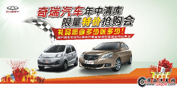 本次活動(dòng)將于7月13-14日在廣西鑫廣達(dá)奇瑞旗艦店舉行,奇瑞廠家直接給廣西鑫廣達(dá)奇瑞旗艦店15臺(tái)限量促銷車型,參加本次活動(dòng)僅15個(gè)名額,奇瑞汽車限量搶購名不虛傳。