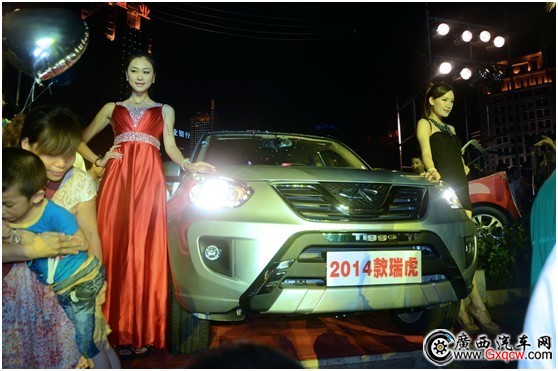2014款科技版瑞虎在兩位模特的襯托下,更顯虎子的野性