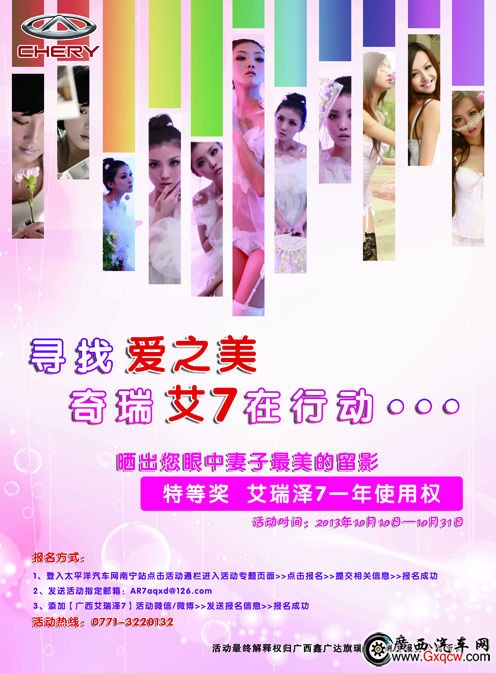我們選的不僅僅是美女和靚車,是最美的愛情與生活!活動(dòng)咨詢熱線:0771-3220132