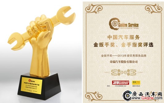 繼2011、2012連續(xù)兩年獲得“中國汽車服務(wù)金扳手獎”之后,日前,隨著“2013中國汽車服務(wù)金扳手獎、金手指獎評選”活動榜單在京揭曉,奇瑞汽車再度榮登榜單,第三次捧得金扳手獎,實現(xiàn)歷史性“三連冠”。