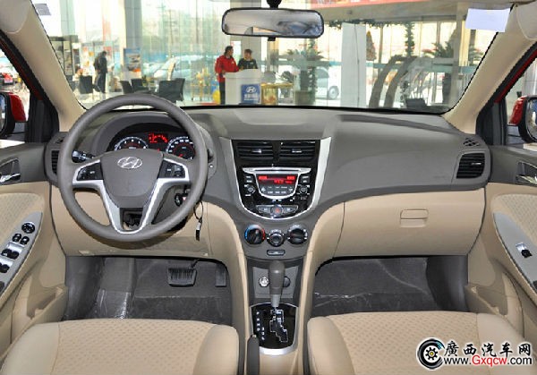 內飾采用上深下淺的顏色搭配,儀表臺雖然采用硬質材料,但通過表面的 紋路處理,并沒有給人很廉價的感覺。中控臺設計依然延續(xù)了韓系車型的簡潔大方、操控順手的經典布局。顯示屏與音響等各項配置對稱地分布在中控面板上。
