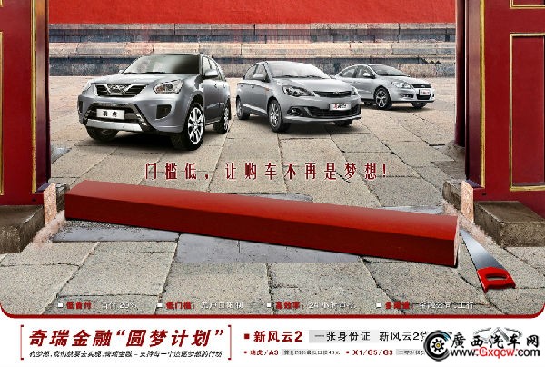 相比之下,近日奇瑞*新推出的“一張身份證新風云2貸回家”金融購車活動卻便捷許多。購車者只要提供一張身份證,同時首付全車總價的50%,就可輕松申請到36個月以下(含)期限的金融貸款。沒有苛刻的身份條件,沒有繁瑣的流程手續(xù),擁有一輛車可以很簡單。